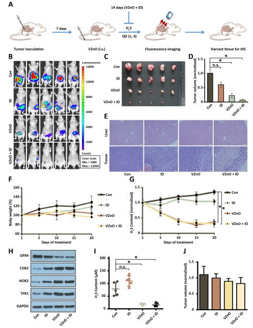 腫瘤組織GPX4↓、H?S濃度↓80%(圖5H-I)。