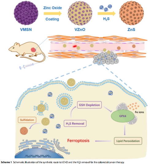 用于結(jié)直腸癌硫化氫清除和鐵死亡的氧化鋅納米球