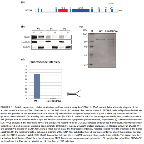 解析DDX11 p.Leu836Pro突變 的致病機制(蛋白定位、解旋活性)。