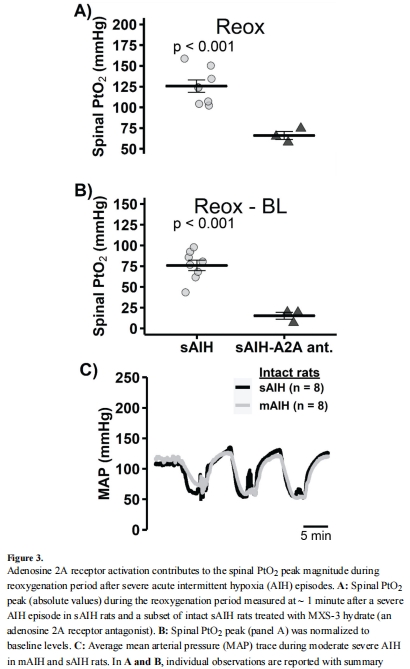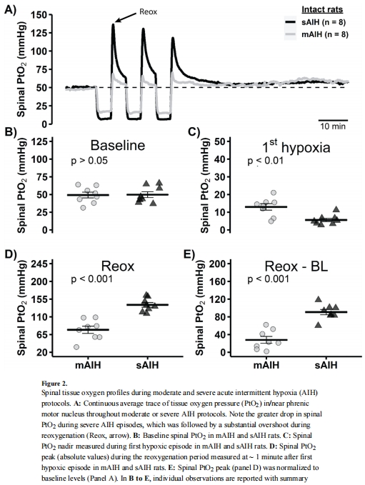 圖2A:首次實現 秒級分辨率 記錄脊髓PtO?在AIH期間的動態變化,揭示: