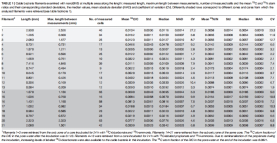 意義:證明電纜細菌的碳氮同化在絲狀體內部高度均一,支持分布式生長模式(非頂端生長)。