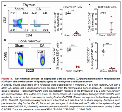 CA/CPR導致急性脾/胸腺萎縮和淋巴細胞減少。