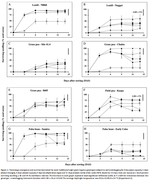 Tolerance of four grain legume species to waterlogging, hypoxia and anoxia at germination and recovery