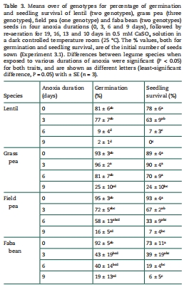 無氧環(huán)境:草豌豆恢復存活率24%,顯著高于蠶豆(6%)和豌豆(7%)(表3)。