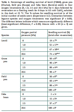 四種谷物豆科植物在發(fā)芽和恢復時對澇、缺氧和缺氧的耐受性