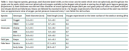 小扁豆70860(種子厚2.1mm)位于氧分壓8.4-15.5 kPa層,蠶豆(厚5.6-20.9mm)僅0.2 kPa(表2)。