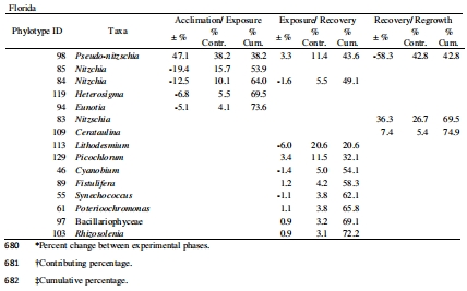佛羅里達(dá):僅假菱形藻(phylotype-98)顯著響應(yīng)。