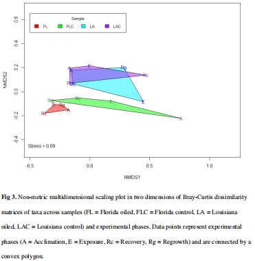 長期暴露群落的恢復(fù)力更強(qiáng):路易斯安那群落結(jié)構(gòu)在暴露后更快恢復(fù)至基線水平(圖3)。