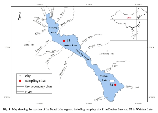 ? 選取南四湖獨山湖(S1)和微山湖(S2)兩個站點采集沉積物柱狀樣(圖1)。