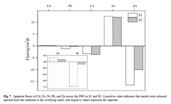 ? 數(shù)據(jù):Cd和Ni呈正通量(向上釋放),Pb/Cu/Zn呈負(fù)通量(向下沉降)。