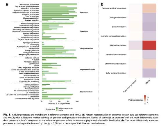 ? 比較MAGs與參考基因組的代謝通路差異(圖3)。