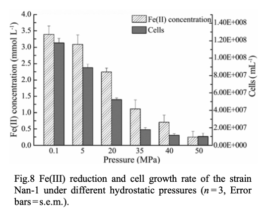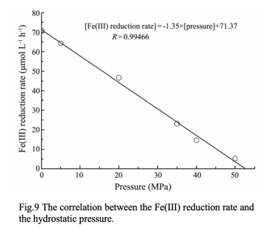 ? 數(shù)據(jù):Fe(II)生成速率隨壓力升高而下降(0.1 MPa: 70.8 μmol/L/h → 50 MPa: 5.3 μmol/L/h)