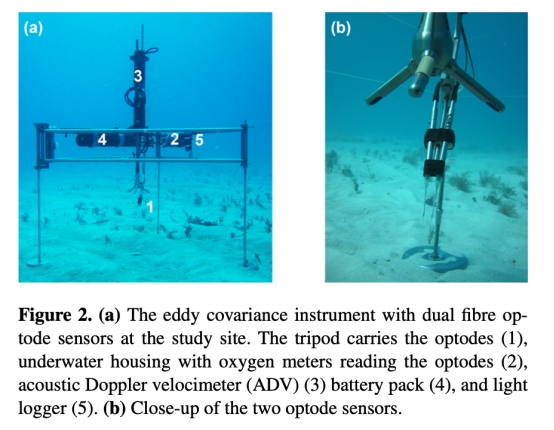 論文開發(fā)了一種雙光極渦動協(xié)方差儀器(2OEC),通過并行測量溶解氧濃度和垂直流速變化,結(jié)合新型數(shù)據(jù)分析方法,顯著提高了沉積物-水界面氧通量測量的可靠性。該儀器在佛羅里達(dá)礁島群碳酸鹽砂質(zhì)沉積物的現(xiàn)場部署表明: