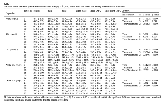 ? 研究意義:證實SMFC通過鐵循環介導電子傳遞——藻類降解產物驅動Fe(II)生成(藻+SMFC組Fe(II)達93.5 mg/L),Fe(II)作為電子穿梭體將電子傳遞至陽極,促進電流產生(與圖1a電壓上升階段同步)。