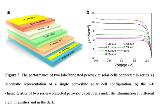 ? 實驗室鈣鈦礦電池串聯(圖3):Voc>2 V,PCE~18%