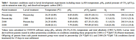 1.驗(yàn)證父母馴化(acclimation)能否增強(qiáng)后代對海洋升溫和酸化的抵抗力;
