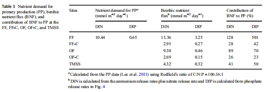 來源:表3(營養鹽通量與初級生產需求對比)。
