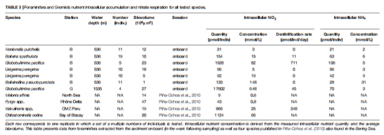9種有孔蟲的細(xì)胞內(nèi)氮庫占孔隙水NO??的0.5%-19.4%(表4)。