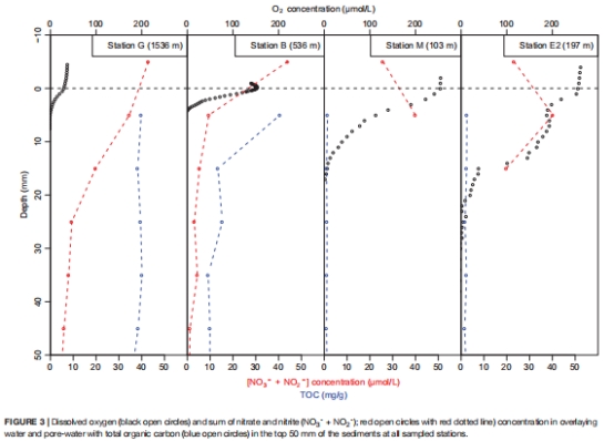 氧微剖面顯示站G的陡峭氧衰減(0-5mm從200→0 μmol/L),解釋為何G. pacifica在深層富集(需厭氧微生境)。
