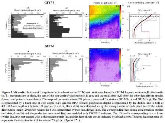 結(jié)合孔隙水硝酸鹽分布與有孔蟲反硝化速率,計(jì)算其對(duì)底棲氮損失的貢獻(xiàn)(方法2.5節(jié))。
