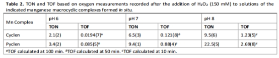 pH 8時pyclen-Mn的TOF達2.69 min?1(cyclen-Mn僅1.23 min?1);