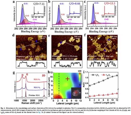 AFM顯示SLG-S?尺寸從625nm碎片化為210nm,表面粗糙度增加50%(圖2d-f);