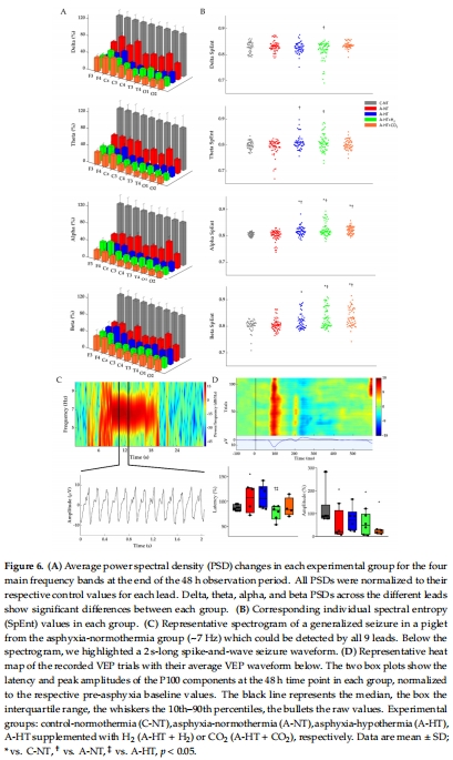 研究通過建立嚴(yán)重HIE豬模型(20分鐘窒息誘導(dǎo)),評(píng)估了低溫療法(TH)單獨(dú)或聯(lián)合吸入H?(2.1%)或CO?(分級(jí)恢復(fù)正常碳酸血癥)的神經(jīng)保護(hù)效果。結(jié)果顯示: