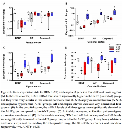 探究窒息后腦區(qū)特異性損傷機(jī)制及TH的分子調(diào)控(BDNF、AIF、caspase-3基因表達(dá))。