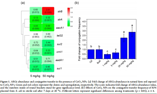 探究CeO? NPs(農業納米技術常用材料)對土壤中ARGs水平轉移(HGT)的影響。