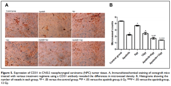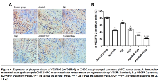 研究通過裸鼠移植瘤模型(CNE-2鼻咽癌細胞)探究 阿帕替尼(VEGFR-2抑制劑)聯(lián)合放療的協(xié)同抗腫瘤機制: