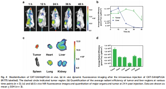 2.納米載體優勢:PLGA納米顆粒保護CAT活性,延長SAHA半衰期(t?/?從2.6小時增至3.95小時),提升腫瘤靶向性。