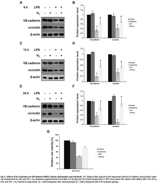 1.驗證 H?對LPS誘導的PMVEC屏障破壞(連接蛋白下調)的保護作用。
