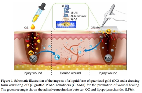 研究開發(fā)了一種新型 量子化金納米復(fù)合材料(QG),通過(guò) 雙功能協(xié)同機(jī)制 促進(jìn)傷口愈合:
