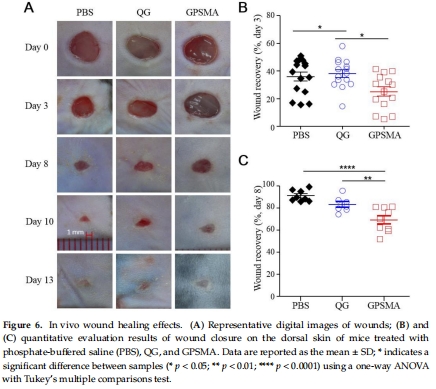 傷口閉合率:液態(tài)QG在第3天顯著加速閉合(圖6B)。