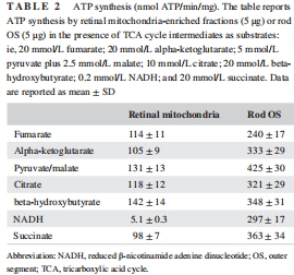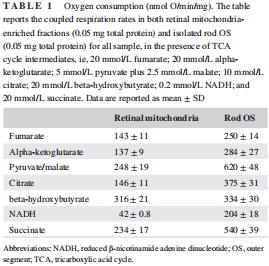 氧消耗與ATP合成:測量OS盤和線粒體對(duì)7種底物(如琥珀酸、NADH)的呼吸活性(表1、表2)。