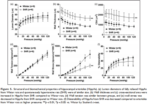總結:本研究通過整合行為學、在體微電極監測、離體血管功能及大血管結構分析,首次闡明高血壓通過“主動脈僵硬度↑→海馬小動脈重塑→低灌注→記憶損傷”的因果鏈條,為靶向血管改善認知提供了新方向。