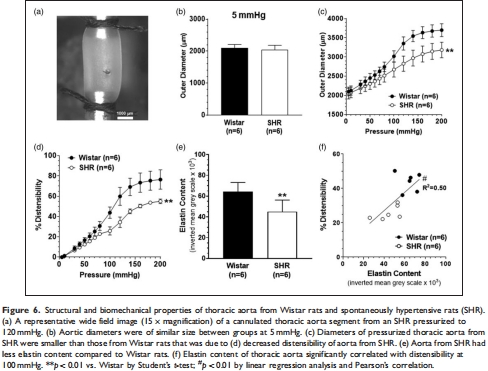 彈性蛋白含量與主動脈擴張性正相關(圖6f)。