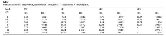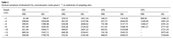 2. 沉積物CH?和CO?濃度(表1-2):