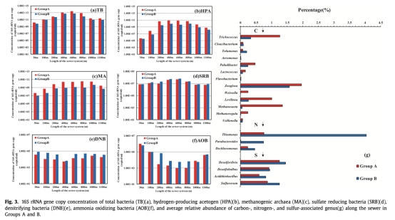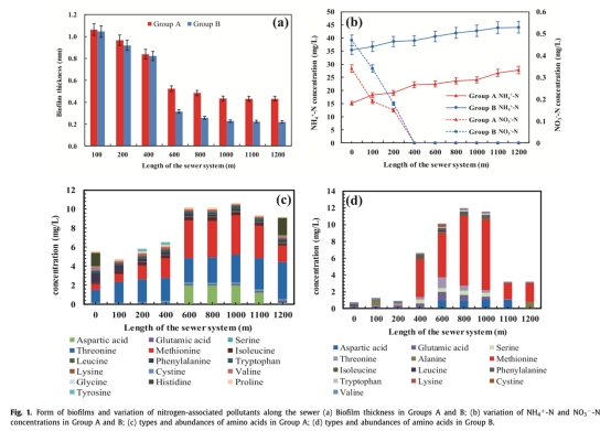 研究通過1200米中試下水道系統(tǒng),探究有機/無機氮比例(7:3的A組 vs 3:7的B組)對碳、氮、硫生物轉(zhuǎn)化的影響。關(guān)鍵發(fā)現(xiàn)包括: