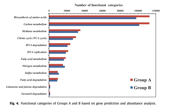 ? 數(shù)據(jù):A組甲烷代謝基因(如1.2.7.4)表達更高;B組硫還原基因(如1.8.99.2)和反硝化基因(1.7.2.1)富集。