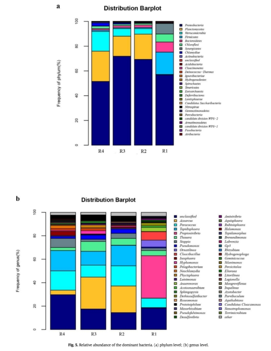 ? 曝氣體系:好氧反硝化菌(如Paracoccus)與異養菌(如Tepidisphaera)通過代謝互作構建脫氮微環境。