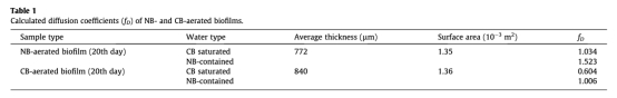 3 計算關鍵參數:基于DO剖面斜率計算擴散系數(fD)(表1),NB曝氣下fD達1.523(CB為1.006),量化了NB曝氣對傳質的增強效果(1.5倍),為模型建立提供數據支撐。