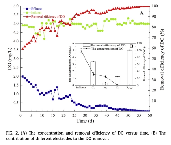 6. 電流和電極電位:顯示生物電極活性和外部電壓對DO去除的加速作用,意義在于確認生物電化學機制的貢獻。