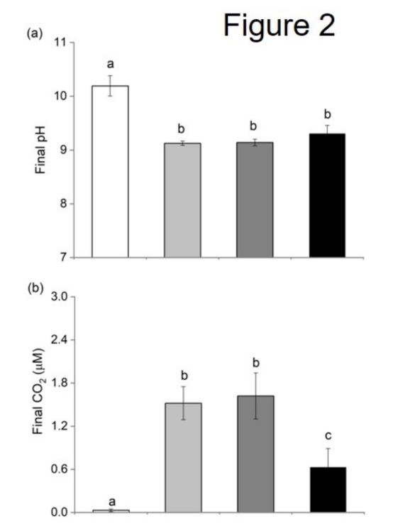 1. pH漂移終點(diǎn)和最終CO2濃度(來自圖1和圖2):測(cè)量漂移結(jié)束時(shí)的pH和CO2濃度,顯示抑制劑如何阻斷HCO3-利用。研究意義在于證實(shí)HCO3-吸收機(jī)制的存在,并量化其對(duì)環(huán)境碳耗盡的響應(yīng)(圖2a,b)。