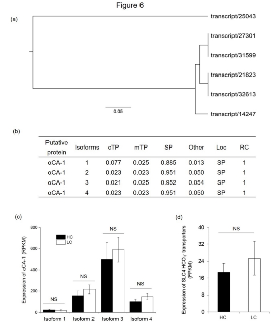 3. 外部CA活性和基因表達(dá)(來自圖5和圖6):通過酶活測(cè)定(REA)和轉(zhuǎn)錄組數(shù)據(jù),比較高/低CO2適應(yīng)葉片中aCA-1和SLC4的表達(dá)。研究意義在于確認(rèn)這些機(jī)制的組成性(非誘導(dǎo)性),并關(guān)聯(lián)CA活性與Ci吸收速率的正相關(guān)性(圖5c,d)。