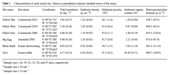 1. 時空對比設計:選取牙買加灣6個鹽沼站點,包括4個不同恢復年份(2003–2012年)的人工恢復沼澤、1個穩定現存沼澤(JoCo)和1個退化沼澤(Black Bank),形成時間序列與狀態對比
