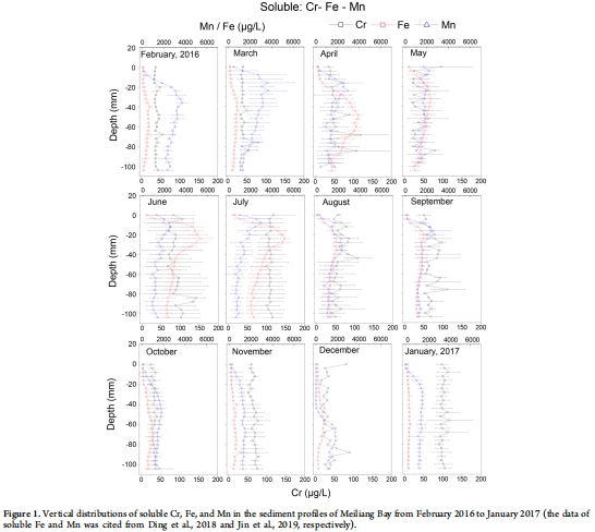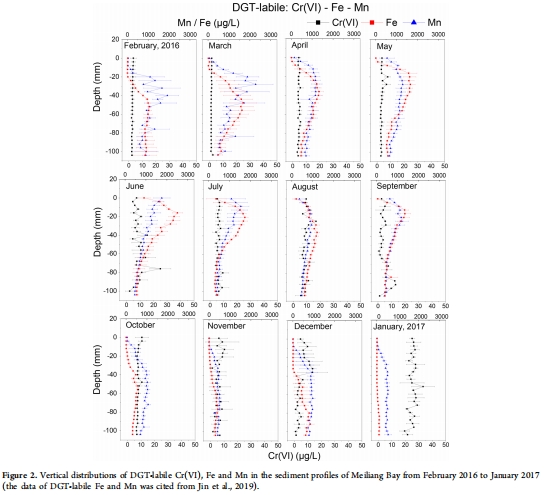 來(lái)源:月度變化的垂直分布數(shù)據(jù)來(lái)自圖1(可溶性Cr)和圖2(DGT有效態(tài)Cr(VI))。月度平均濃度的對(duì)比顯示在圖3a和3b。與水質(zhì)標(biāo)準(zhǔn)的對(duì)比見(jiàn)表1。