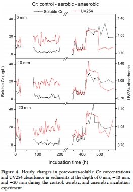 意義:好氧-厭氧實(shí)驗(yàn)中的每小時(shí)數(shù)據(jù)(圖4)直接證明了厭氧條件下DOM(通過(guò)UV254指示)的增加與可溶性鉻濃度的同步上升存在顯著正相關(guān),強(qiáng)有力地支持了夏季Cr(III)-DOM絡(luò)合的主導(dǎo)機(jī)制。藍(lán)藻添加實(shí)驗(yàn)(圖5)顯示了藍(lán)藻生命活動(dòng)如何改變鉻遷移的晝夜節(jié)律。
