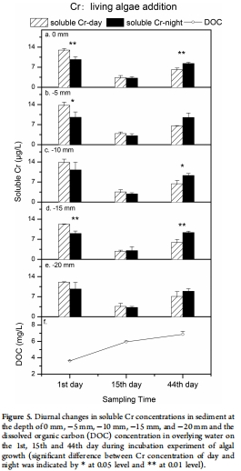 藍(lán)藻水華的影響:藍(lán)藻水華通過(guò)提供有機(jī)質(zhì)間接影響夏季鉻的遷移,并會(huì)改變沉積物中鉻遷移的晝夜動(dòng)態(tài)模式。