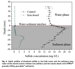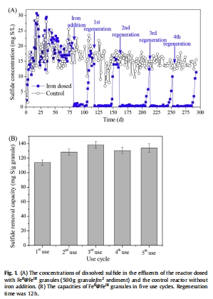 高效硫化氫控制:Fe?@Fe??? granules添加至沉積物表層,去除97%硫化物,容量達163 mg S/g Fe。